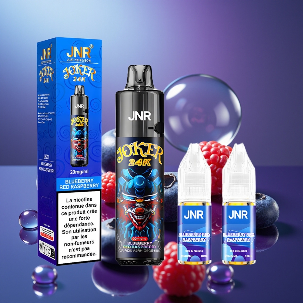 JNR Joker 24K Puffs Disposable Vape Afină Zmeură Roșie cu Baterie 800mAh și Iluminare Color